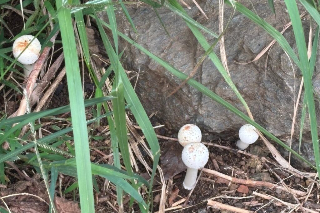オオシロカラカサタケという毒キノコの開く前のような感じです。犬が食べる前に殲滅しなくては。