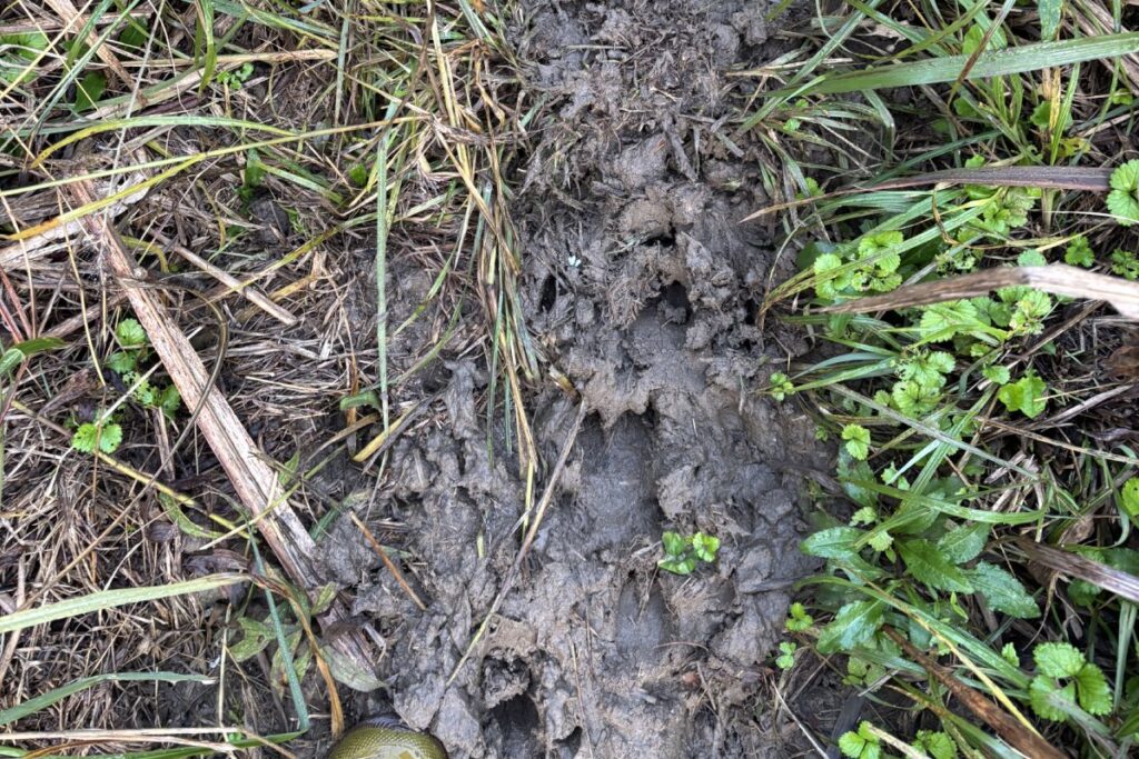 あと、Sさんに聞いたところでは千葉は動物の足跡が多すぎてアニマルトレッキング(足跡や痕跡から獲物を追うこと)は難しいそうです。でも、見ているとすごく想像ができるし、意外な場所で糞をしていて、罠を仕掛けるヒントになりそう。