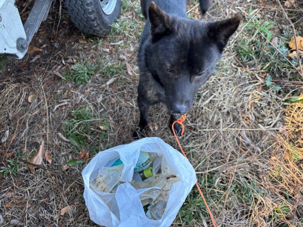 犬との山歩きでゴミ拾い